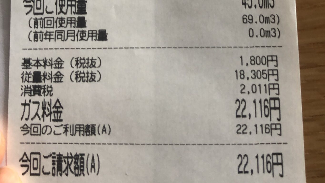 最初にガス料金を見たときに2ヶ月分の請求だと本気で思ったくらいです。